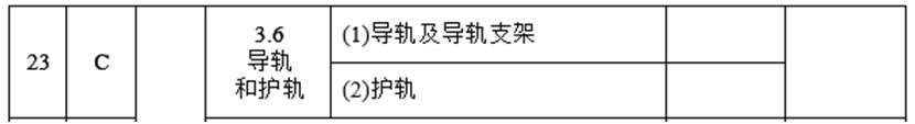 (8)將3.6項(xiàng)的檢驗(yàn)項(xiàng)目及類別調(diào)整為:“導(dǎo)軌和護(hù)軌 C”,檢驗(yàn)內(nèi)容與要求調(diào)整為: