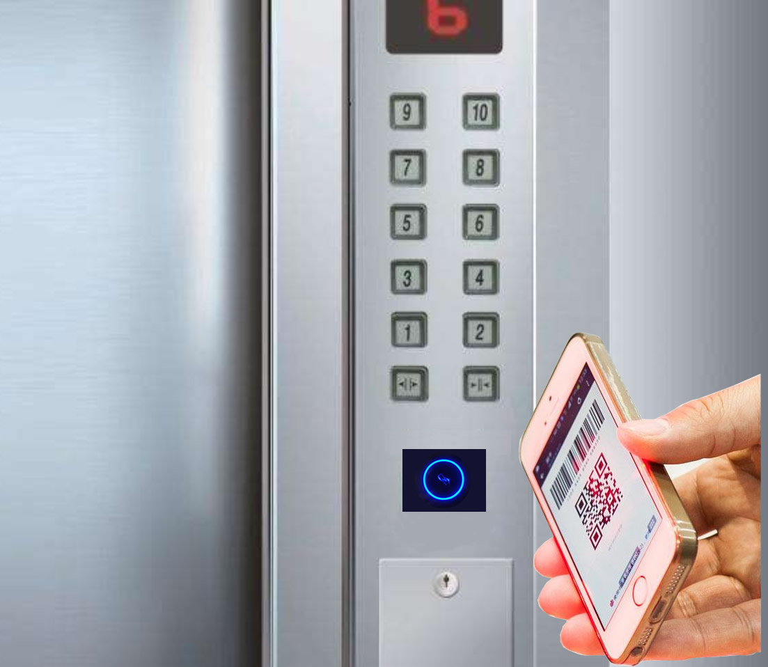 (3)訪客進(jìn)入電梯后,無需按鍵,將二維碼對(duì)準(zhǔn)電梯二維碼讀頭,倍加信梯控系統(tǒng)后自動(dòng)點(diǎn)亮樓層按鈕乘梯;