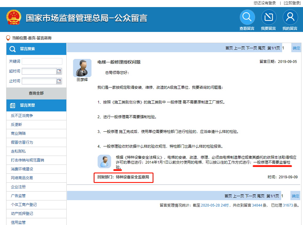 【回】根據(jù)《特種設備安全法釋義》,電梯的安裝、改造、修理,必須由電梯制造單位或者其委托的依照本法取得相應許可的單位進行;2014年1月1日以前交付使用的電梯,可以按以往的工作方式進行;一般修理不需要監(jiān)督檢驗。