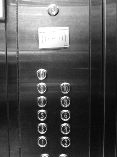 走進(jìn)陽光舜城中六區(qū)2號樓內(nèi),在一樓電梯間,記者發(fā)現(xiàn)雖然按了電梯的上升鍵之后能夠正常進(jìn)入電梯,可是在電梯內(nèi)再按各個(gè)樓層的按鍵時(shí)電梯均不能啟動(dòng)。家住10樓的黃女士告訴記者,想要使用電梯必須得先刷卡,“只要把磁卡在電梯按鍵上方的感應(yīng)區(qū)刷一下,電梯就能正常運(yùn)行了!