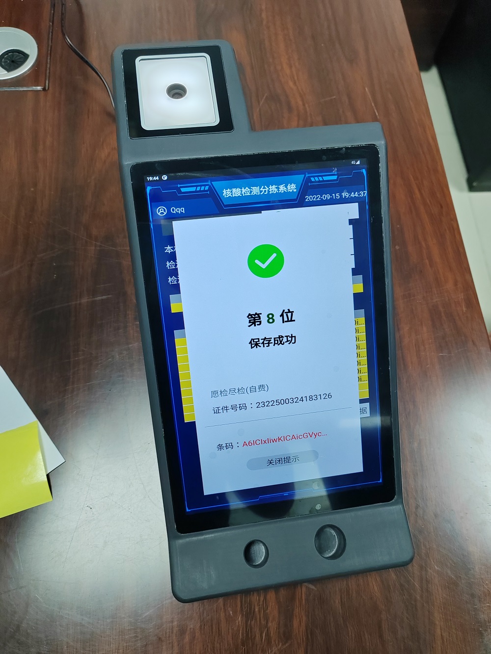 4、下一個(gè)人掃二維碼,同時(shí)工作人員拆棉簽;
