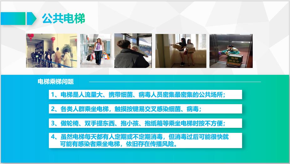 (1)電梯是人流量大、攜帶細(xì)菌、病毒人員密集最密集的公共場所;