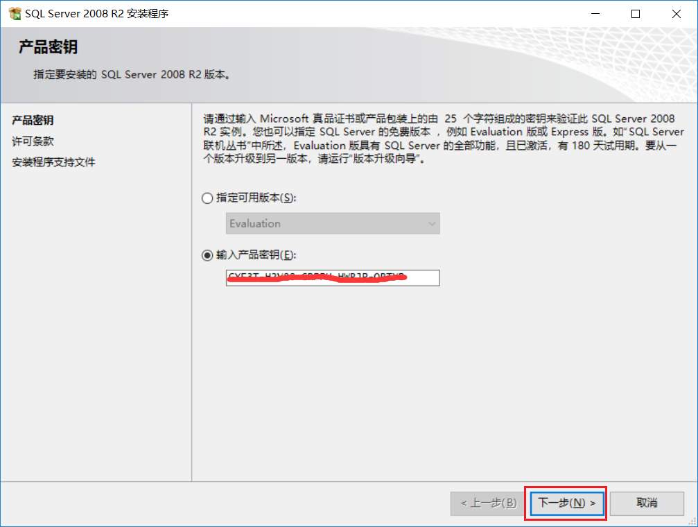 產(chǎn)品密鑰會自動填入,點擊下一步