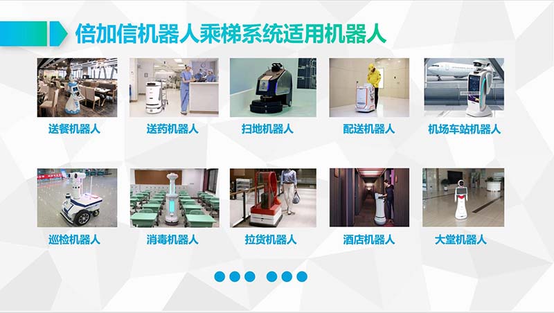 倍加信科技另有機器人WIFI乘梯、機器人藍牙乘梯、機器人云通訊乘梯、機器人LoRa乘梯、機器人ZigBee通訊乘梯、機器人2.4G通訊乘梯、機器人語音乘梯、機器人5G乘梯等乘梯解決方案。