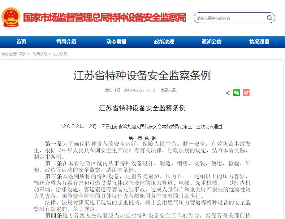 江蘇省特種設(shè)備安全監(jiān)察條例